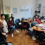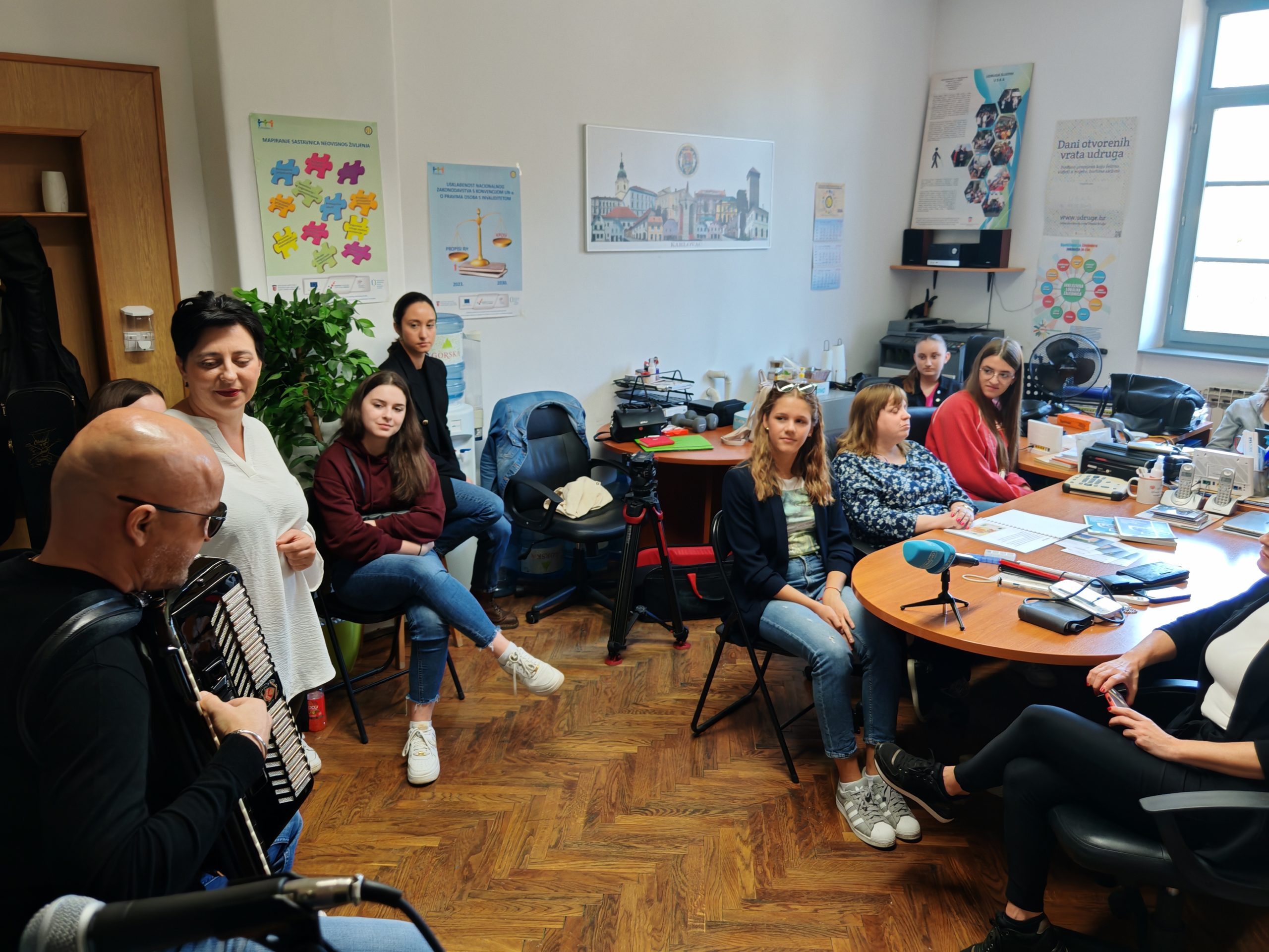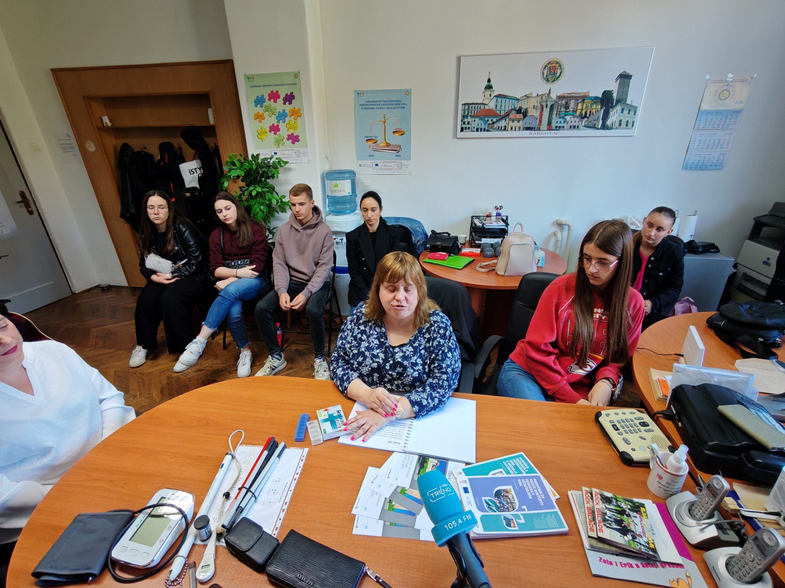 Udrugu slijepih USKA posjetili su danas učenici četvrtog razreda Medicinske škole u Karlovcu s profesoricom Valerijom Žapčić. Dio je to dugogodišnje suradnje zahvaljujući kojoj Udruga slijepih USKA na čelu s predsjednikom Mirsadom Bećirovićem ima privilegiju educirati nove generacije budućih zdravstvenih djelatnika, polaznika Medicinske škole u Karlovcu o komunikaciji, pristupu i mogućnostima osoba s oštećenjem vida. Prilikom današnje posjete predsjednik USKA-e Mirsad Bećirović upoznao ih je sa tiflotehničkim i zdravstvenim pomagalima kojima se služe slijepe osobe u svakodnevnom životu, poput dugog bijelog štapa, govornih pametnih telefona i računala, reproduktora zvučnih knjiga, govornog toplomjera i tlakomjera, govornih uređaja za mjerenje razine glukoze, poput freestyle libre senzora za mjerenje razine glukoze u krvi. Videća pratiteljica Tanja Maraković sa dopredsjednicom USKA-e Suzanom Margić demonstrirala je tehnike kretanja slijepih osoba uz pomoć videćeg pratitelja i načina komunikacije s osobama s oštećenjem vida. Danica Rob prezentirala je važnost brajice kao temelja pismenosti slijepih osoba te njezinu upotrebu u svakodnevnom životu. Edukacija je održana u prostorijama USKA-e u Sokolskom domu, a svakom su polazniku uručene i edukativne brošure. Glazbeni sastav Udruge slijepih USKA ✨Sjaj u tami ✨ Mirsad Bećirović, Suzana Margić i Danica Rob glazbenim repertoarom zaokružio je cijelu edukaciju na najbolji način demonstrirajući mogućnosti osoba s oštećenjem vida i integraciju u društvo kroz glazbu, pjesmu i zajedništvo. Ovakav oblik međusektorske suradnje ima za cilj uz edukaciju i senzibilizaciju polaznika za potrebe osoba s invaliditetom s ciljem poboljšanja kvalitete življenja osoba s invaliditetom u svim segmentima življenja, kao i pružanje podrške službama koje su u doticaju s osobama s invaliditetom kako bi stekle potrebna znanja i vještine pri komunikaciji i pristupu osobama s oštećenjem vida.