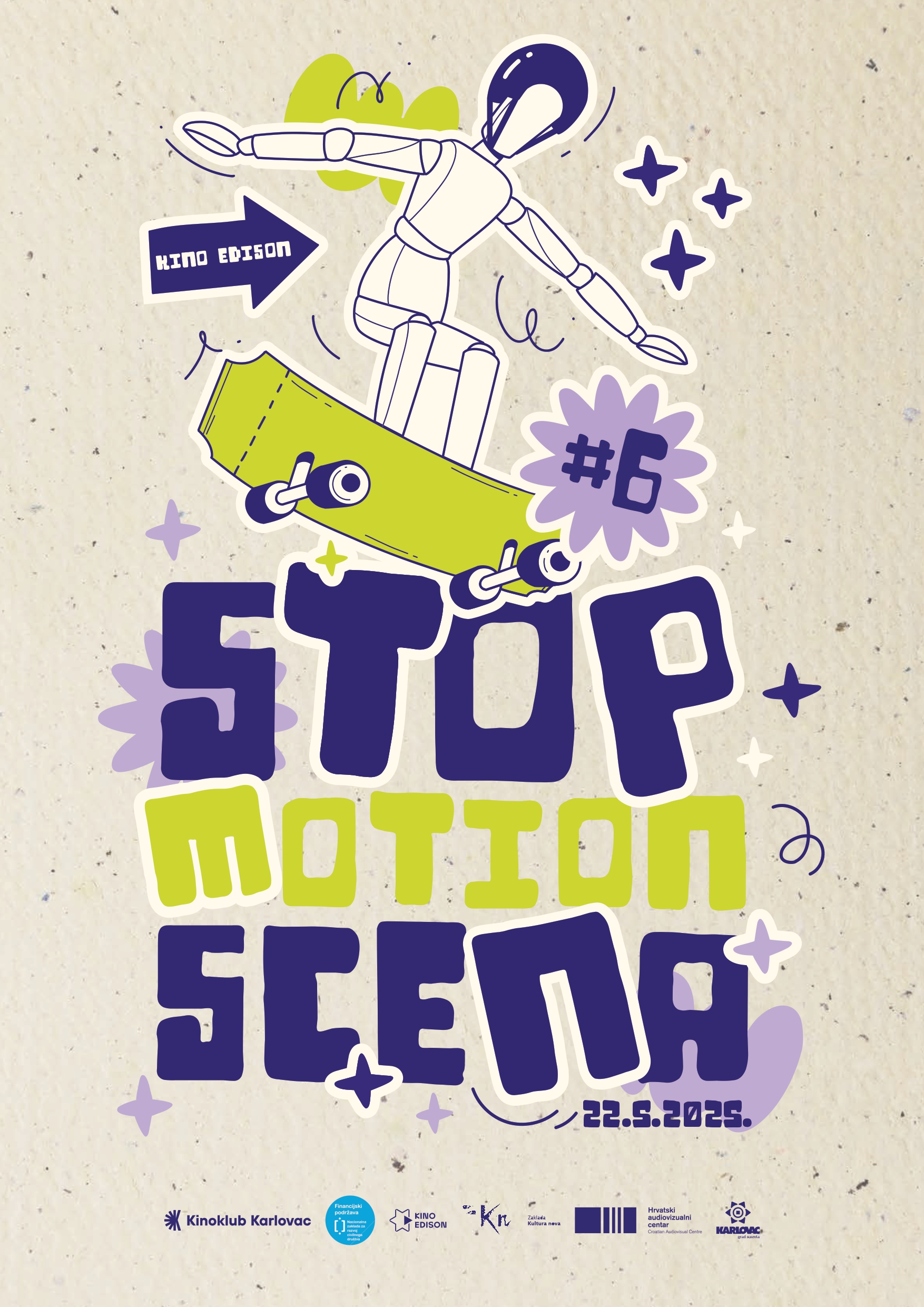 Kinoklub Karlovac organizira 6. izdanje festivala Stop Motion Scena, koji će ove godine biti održan u Kinu Edison u Karlovcu u četvrtak, 22. svibnja 2025. godine u 11:00 sati.